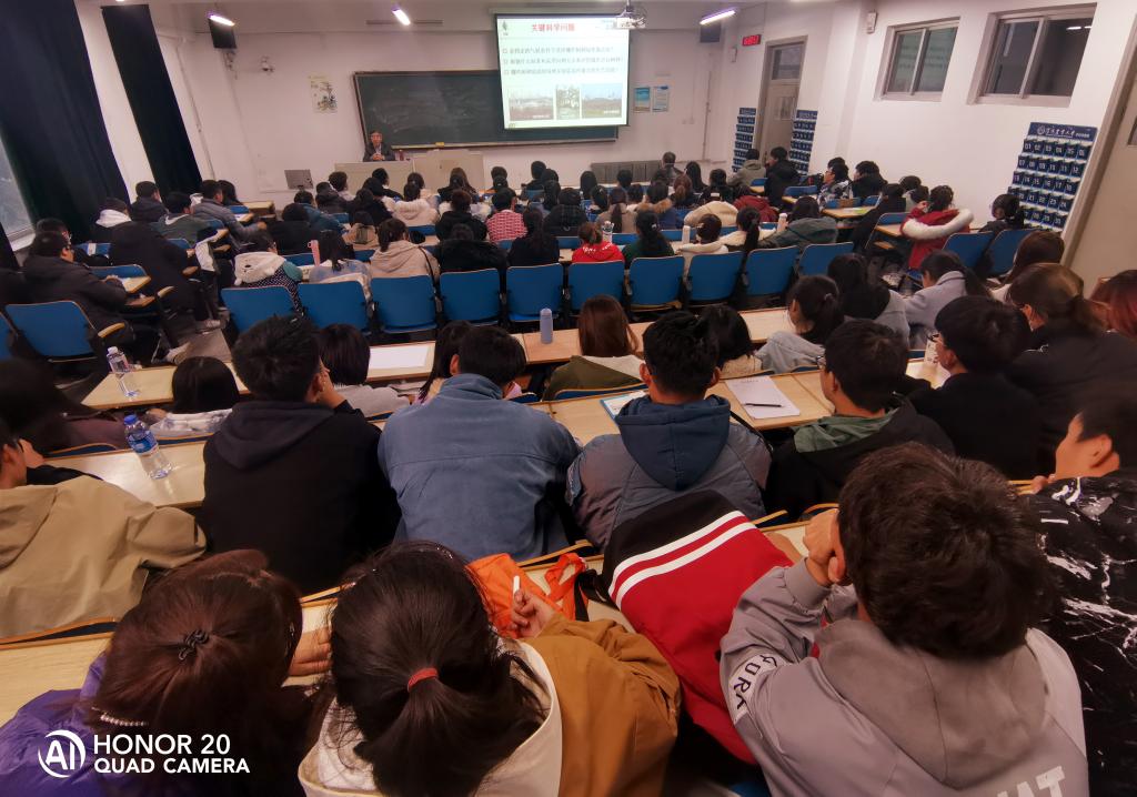 第一教学楼北区211教室15:30准时上课,何兴元校友首先讲述了自己从志愿选择报考沈农林学专业,到以优异成绩毕业分配到中国科学院从事科学研究及管理工作的40年成长历程,展现了“一个农村孩子”特有的吃苦耐劳和纯真朴实,以及对美好生活的向往与追求过程,感恩母校“团结、勤奋、求实、创新”的优良校风塑造自己形成了“严谨、朴实、稳重、创新”的性格、作风。