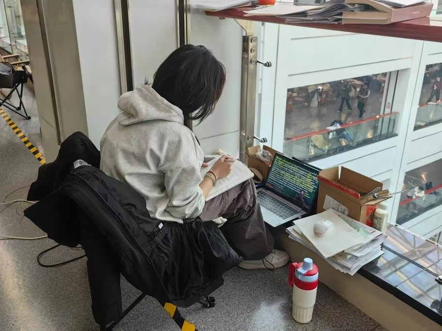 在楼梯的另一隅,你们正轻声背诵,声音在狭窄的空间里回荡。你们紧握书本,仿佛要将每一个字都镌刻在心间。身姿挺拔而自信,你们来回踱步以缓解长时间的站立带来的疲惫,眼神坚定而明亮。每一次背诵都是一场与自己的无声较量。