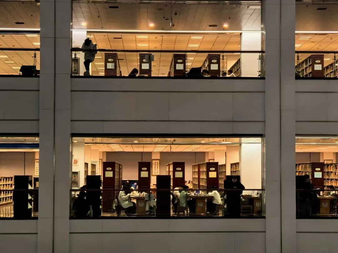 你们的身影遍布图书馆的每一个角落。在楼梯间,你们或坐或立,手中的书页微微泛黄,边缘已略显磨损,这是你们无数次翻阅、刻苦钻研的见证。你们的眼神专注而深邃,仿佛能穿透文字,直抵知识的核心。偶尔抬头望向窗外,眼中闪烁着对未来的无限憧憬与渴望,那是对梦想的执着追求与坚定信念。