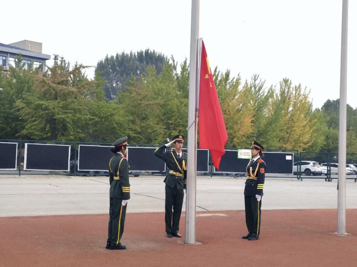 全体学生身着院服,精神饱满、队列整齐。在雄壮的《义勇军进行曲》中,鲜艳的五星红旗冉冉升起,全体师生肃立注目,齐声高唱国歌,向国旗致以崇高敬意。
