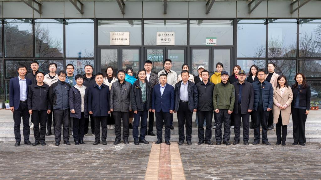 最后,校党委副书记辛彦军和各学院党委书记、全体研究生辅导员、党委研究生工作部相关工作人员在林学院楼前合影留念。