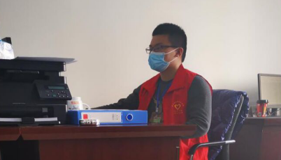 一月十三号,在齐齐哈尔市龙沙区的瑞祥小区门口的门市内,你能看到一个年轻的身影,带着口罩,护目镜,身着防护服,为辖区内的居民填写申请表,这个身影就是此次参加抗击疫情志愿活动的沈阳农业大学的20级林学专业的学生孙睿。