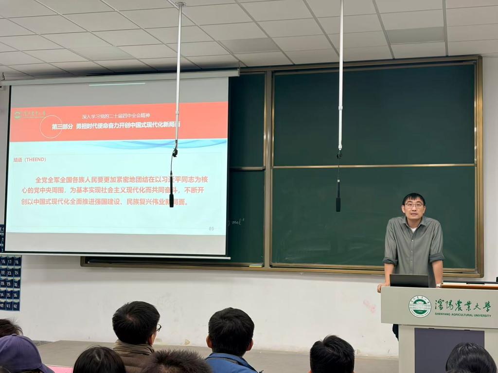 魏文刚教授作为省一流本科课程负责人、沈阳市高层次人才,学术造诣深厚、实践经验丰富。党课中,他紧扣党的二十届四中全会精神核心要义,从理论内涵、实践路径、时代要求等维度,对中国式现代化建设的重大意义和实践要求进行系统阐释。授课既有理论高度的深刻解读,又有结合行业发展的实践思考,内容详实、阐释透彻。